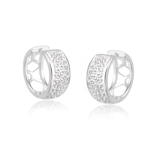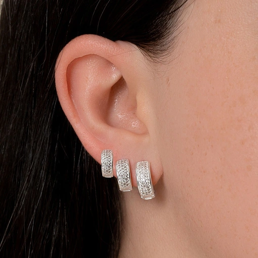 Brinco argola prata com zircônia aro mais espesso e trava click