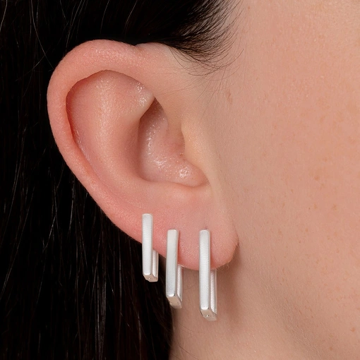 Brinco argola prata lisa design formato retangular trava click