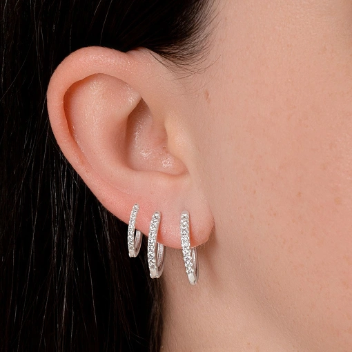 Brinco argola de prata com delicada carreira de zircônia