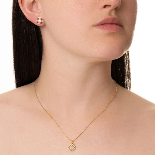 Conjunto folheado brinco e pingente zircônias formato quadrado
