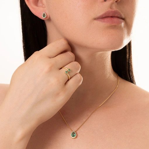 Conjunto folheado brinco e pingente gota com zircônia cor verde
